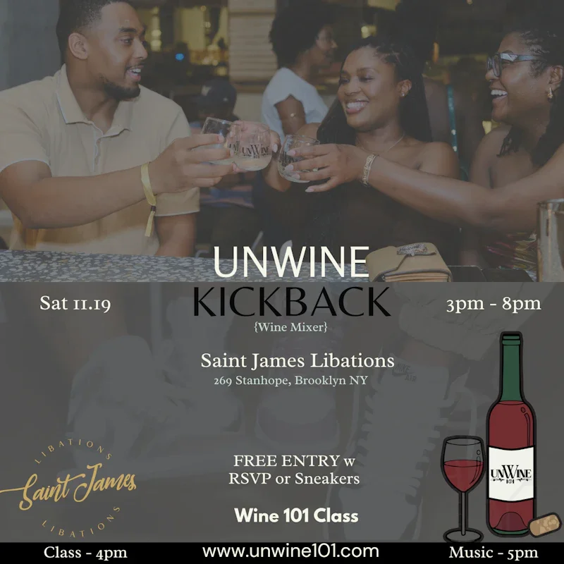 There's only two rules. Unwine & Have a Good Time 3pm - 8pm In town for the holiday weekend? Pull up and unwind with us Saturday afternoon. We’ve got a Black-owned wine flight at a special price, a free wine class from 4–5 PM, and then we’re turning the vibes up with R&B, neo-soul, and trap soul all evening. Chill, sip, vibe. Always make time to Unwine.